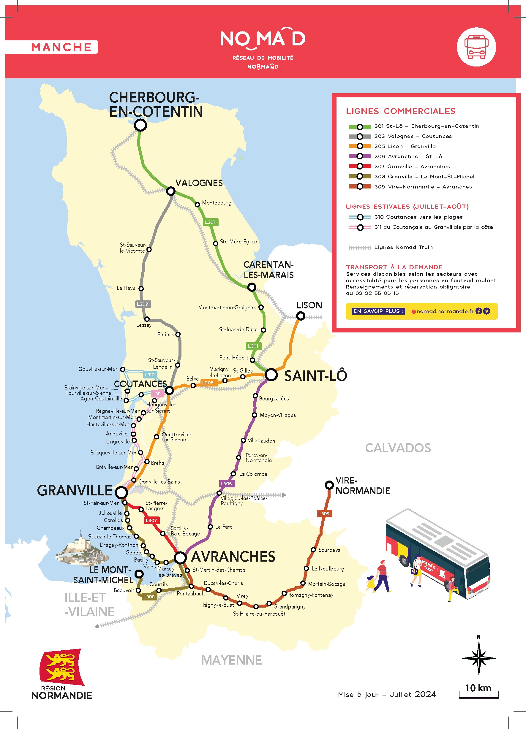 Toutes les informations sur les lignes du réseau NOMAD dans la Manche ici.