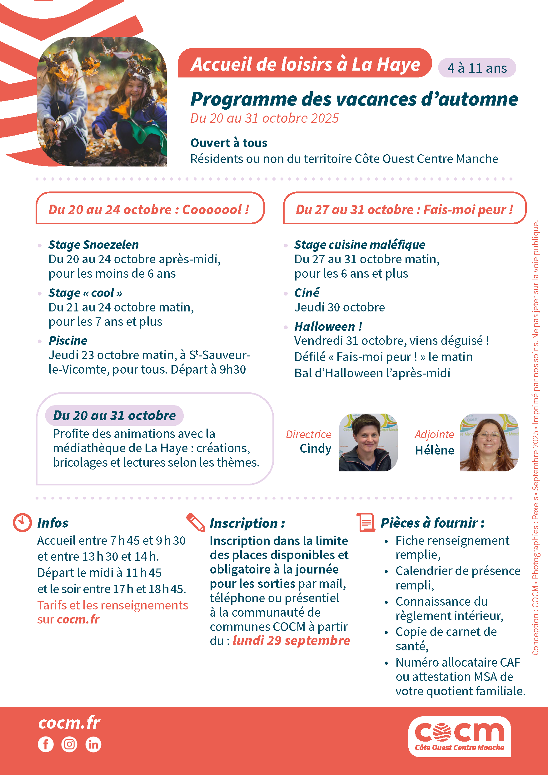 L'accueil de loisirs "La Cachette o Marmots" de La Haye est géré par la Communauté de Communes. Il accueille les enfants âgés de 4 à 11 ans, les mercredis de 9 h 30 à 17 h (garderie possible à partir de 7 h 30 et jusqu'à 18 h 30) et les vacances scolaires de 8 h à 18 h 30 (fermé à Noël)